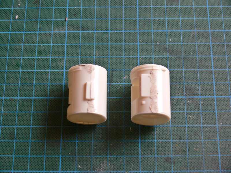 Als nächstes wurden dann noch die alten Aufnahmen an der Achse und die Löcher in den Bälgen verspachtelt und geschliffen, anschließend wurde die Federn von allen Nähten befreit.