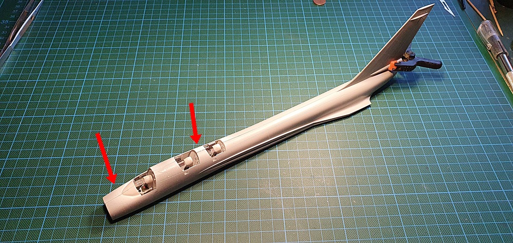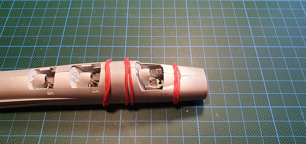 Dazu habe ich erst mal den Fahrwerksschaft, von der Pilotensektion abgeklebt.