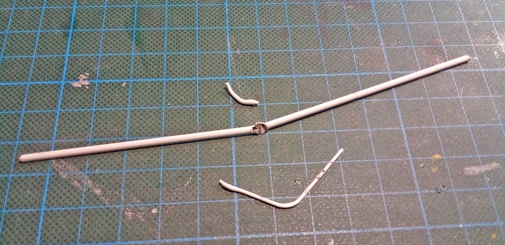 Somit dann auch gleich wieder angesetzt, allerdings steiler als vorher. Noch eine Stützte darunter, damit es nicht komplett nach unten fällt und noch einen Tropfen Revellkleber mit dazu gegeben.