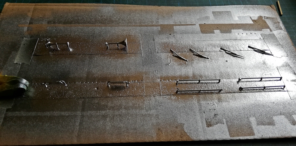 Nun wurden alle Teile, für die Lackierung, fixiert und zunächst erst mal grundiert.