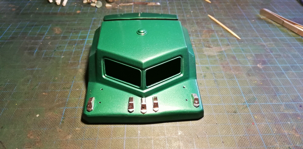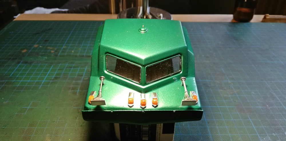 Ok, weiter geht es, nachdem ich das Dach und die Sonnenblende, noch mit Klarlack lackiert hatte, kamen kurz danach auch die Dachleuchten dran.