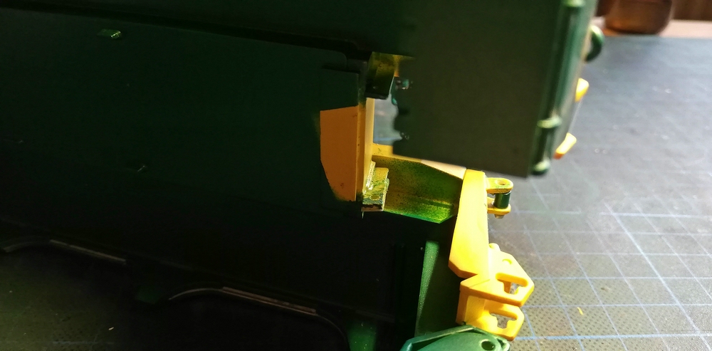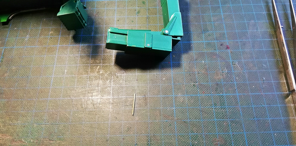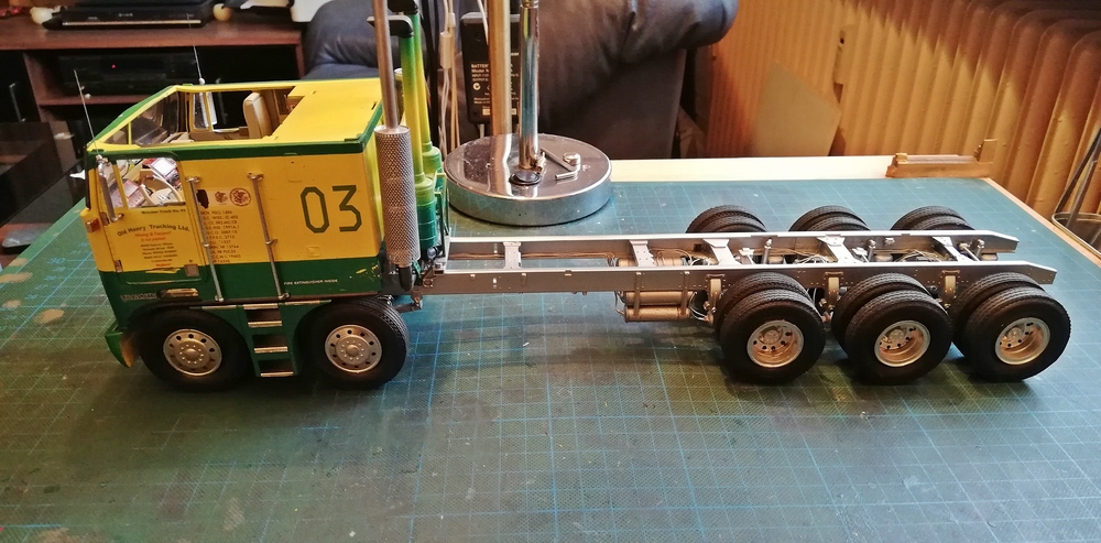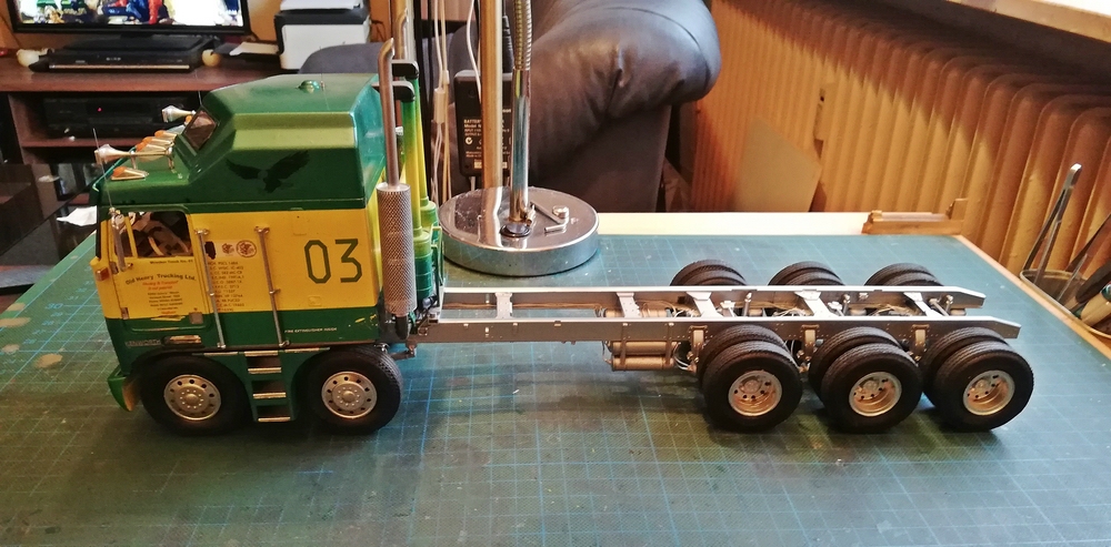 Ok soweit also fertig, aber nun musste das auch noch zusammen gesetzt werden, dazu aber erst mal meine Arbeitsplatte frei machen und dann das Fahrgestell, mit Kabine, da hinstellen.