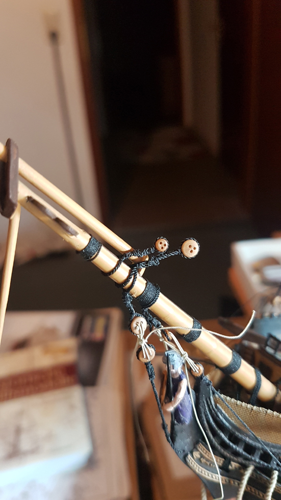 mal wieder ein kleines Update meiner französischen Engländerin ... Immer mal wieder zwischendurch ein oder zwei Wanten am Fockmast gemacht und nun sind sie fertig: