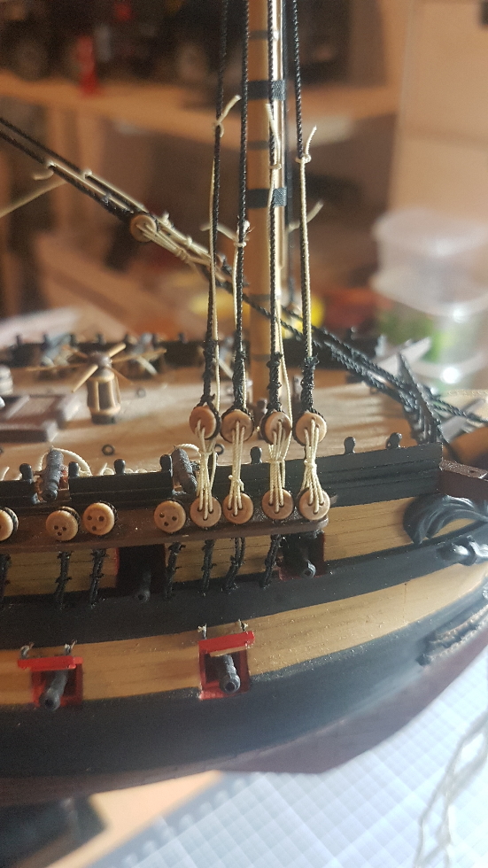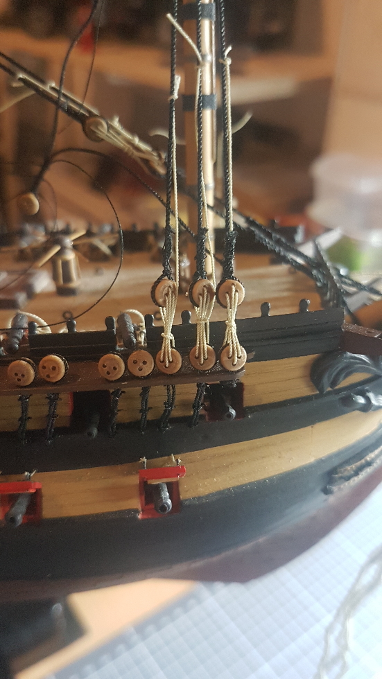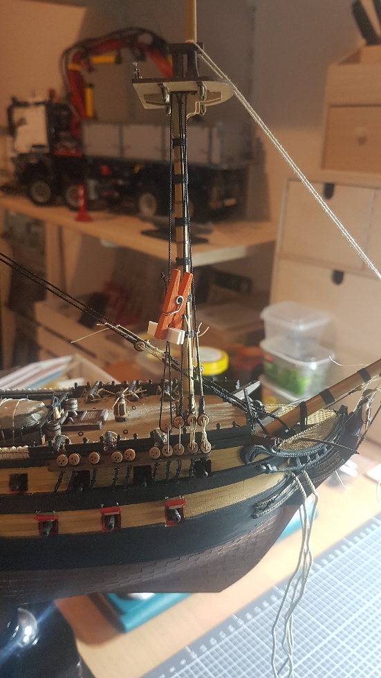 heute mal wieder ein Update meiner französischen Engländerin. Wanten und Stage am Fockmast.