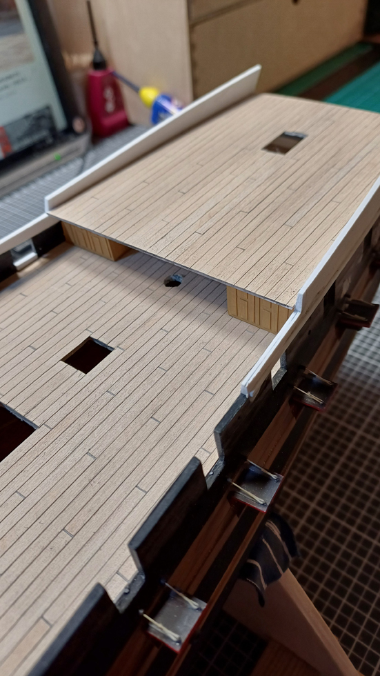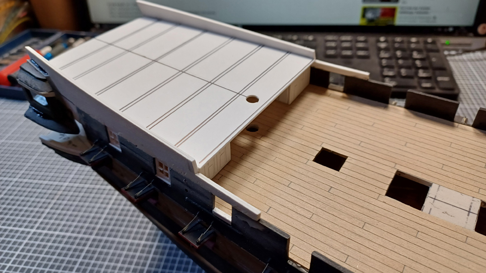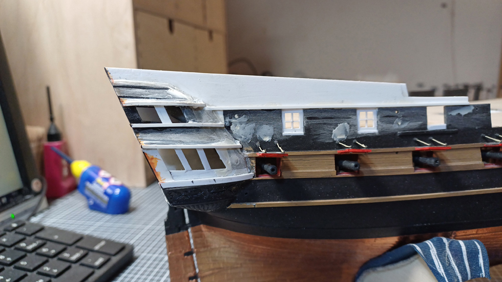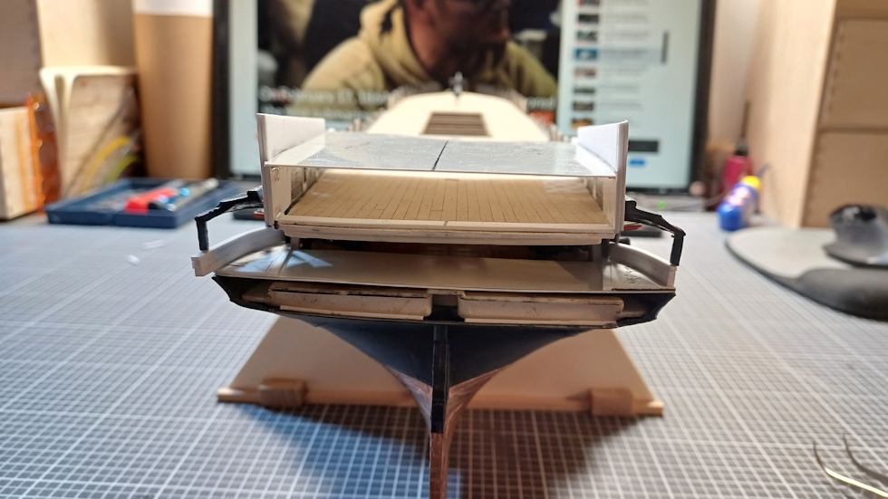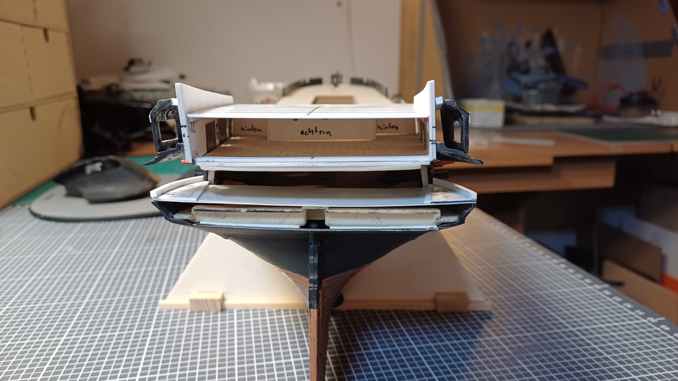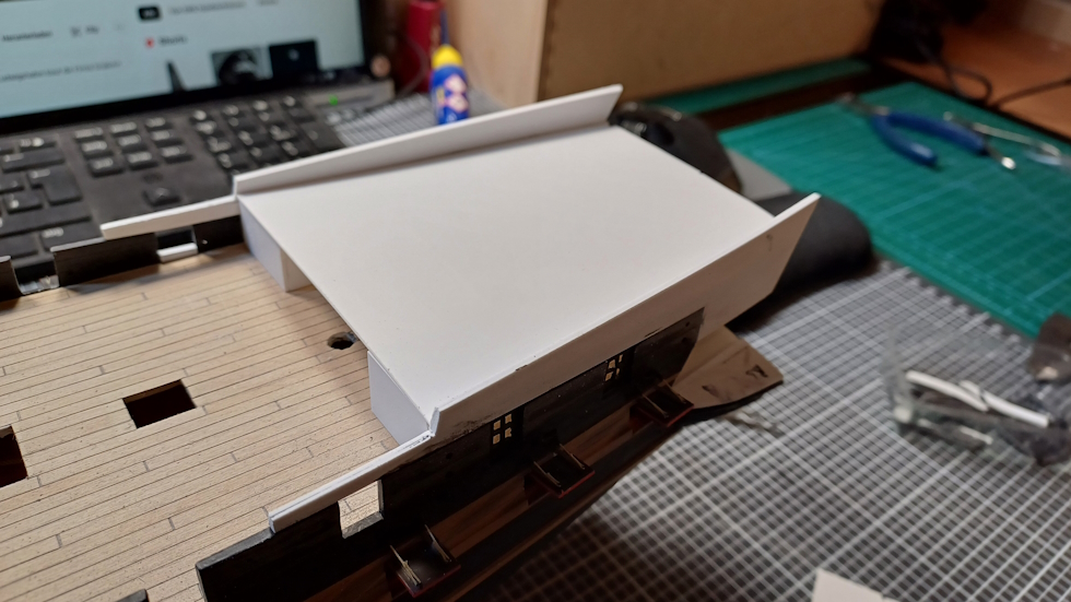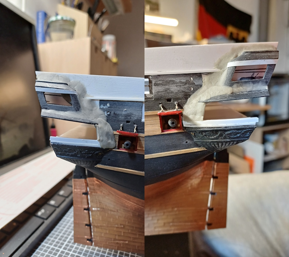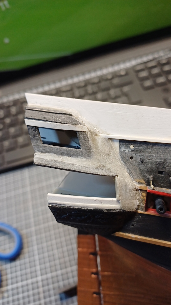 . Mit Farbe kaschieren geht zwar, aber nur in einem gewissen Bereich. Ebenfalls ist hier noch die finale Anpassung der Bordwand an ihre Erweiterung (oder andersrum) zu machen.
