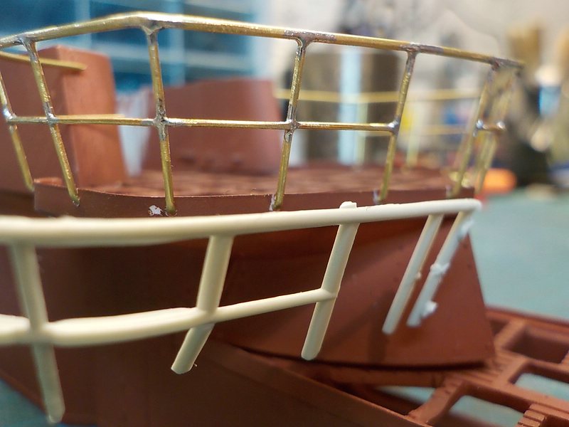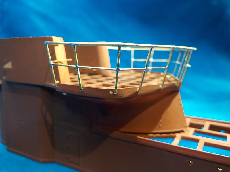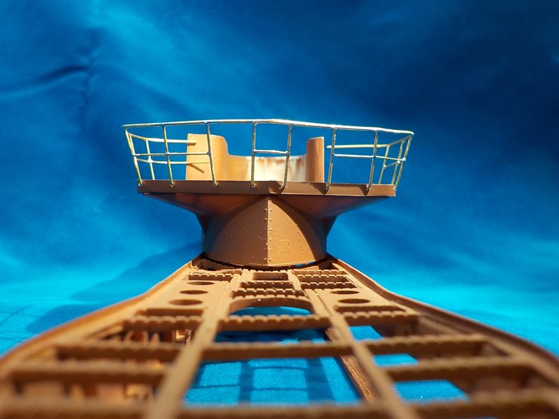 Und zu guter Letzt noch ein paar Bilder am Turmaufbau. Die vordere Reling wurde noch nicht am Turm eingepasst, das folgt vor der Endmontage.