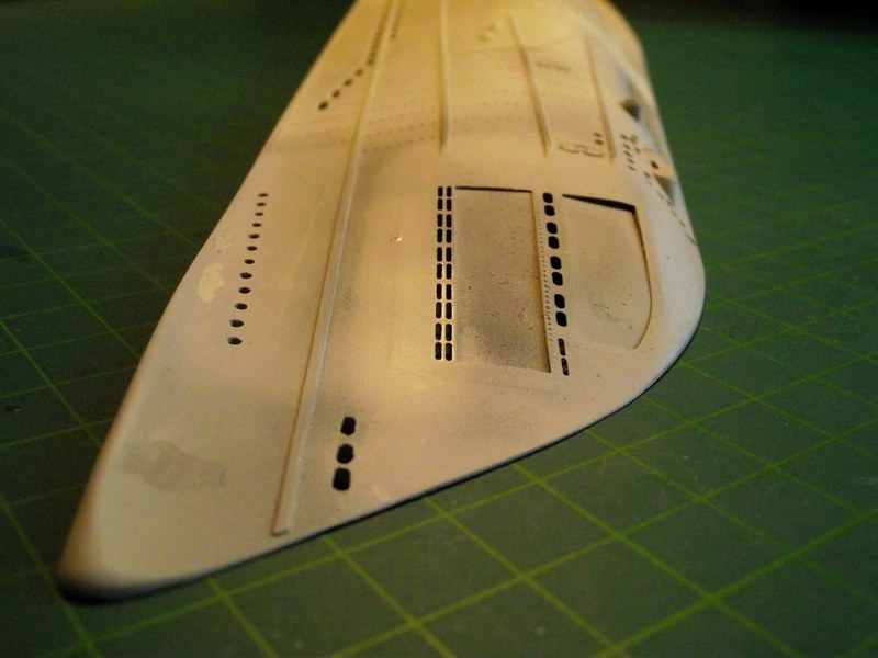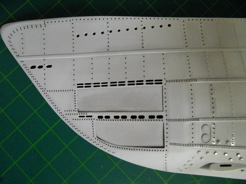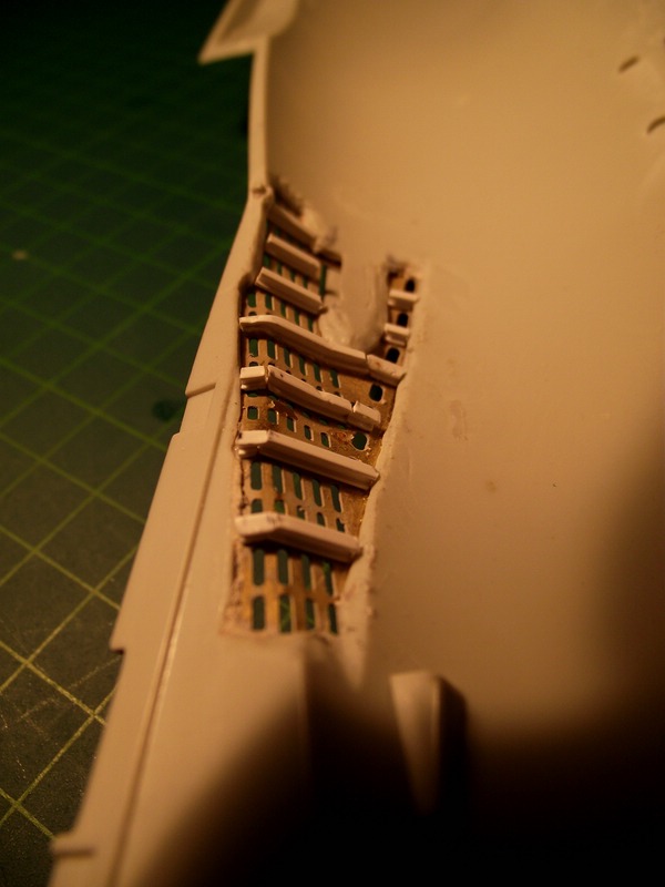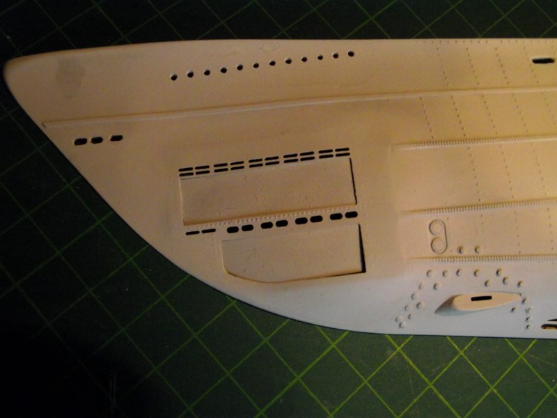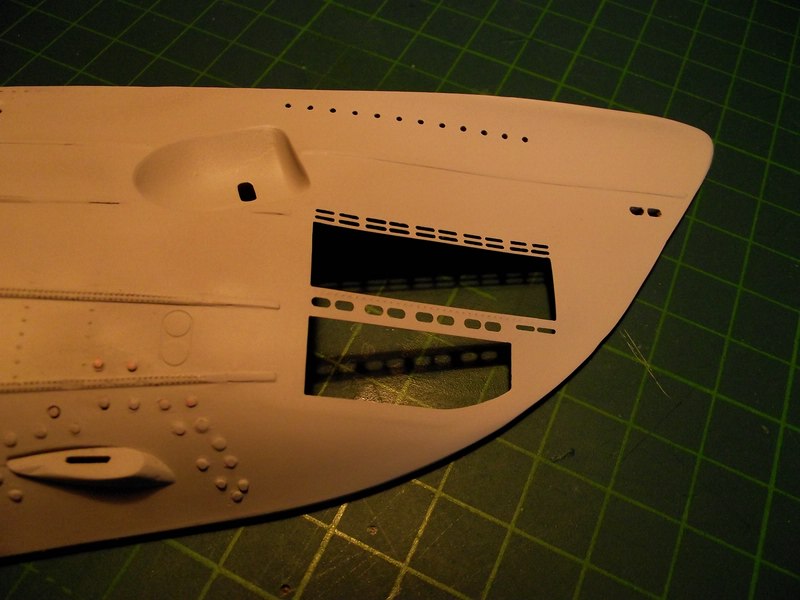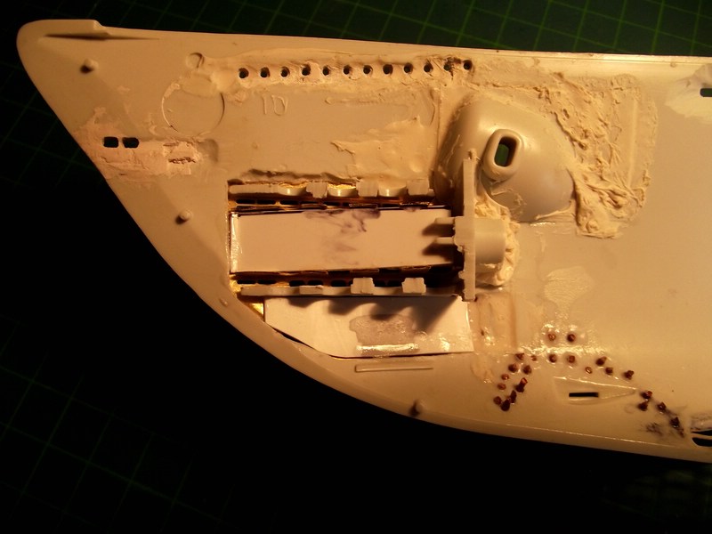 Nachdem nun alle, aber wirklich alle Schlitze geöffnet waren viel mir ein das ich in meinem Fräswahn viel zu Voreilig war. Denn es sollten ja anstatt der Revell-Torpedoöffnungen die von WEM eingesetzt werden.