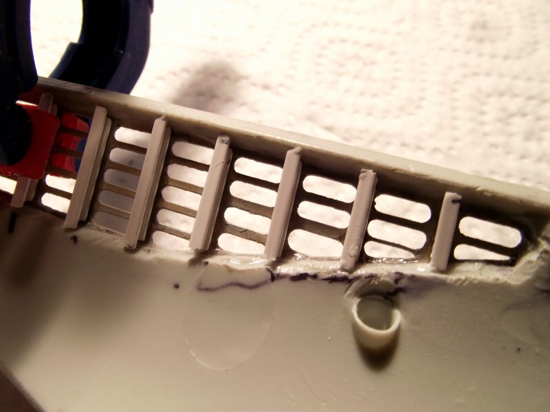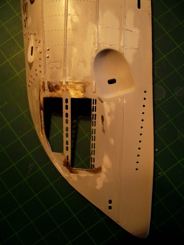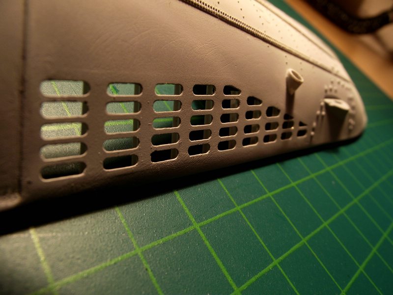 Dabei habe ich gleich die Löcher mit geschlossen, sind viel zu groß dargestellt und die Öffnungen an der Spitze entprechen auch nicht dem Original.