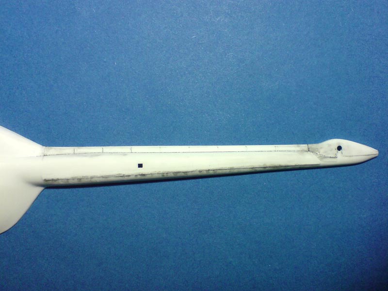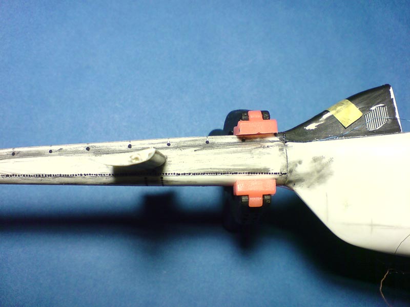 Da ich den Heckausleger fertig überarbeitet hab, konnten die Finne und die Stummelflügel montiert werden.