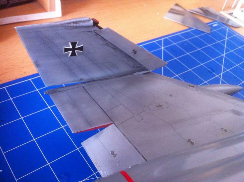 Besonders das Leitwerk hat mir viele Kopfschmerzen bereitet, am Ende habe ich dann viele Pünktchen mit einer Nadel gesetzt und Future rübergestrichen.