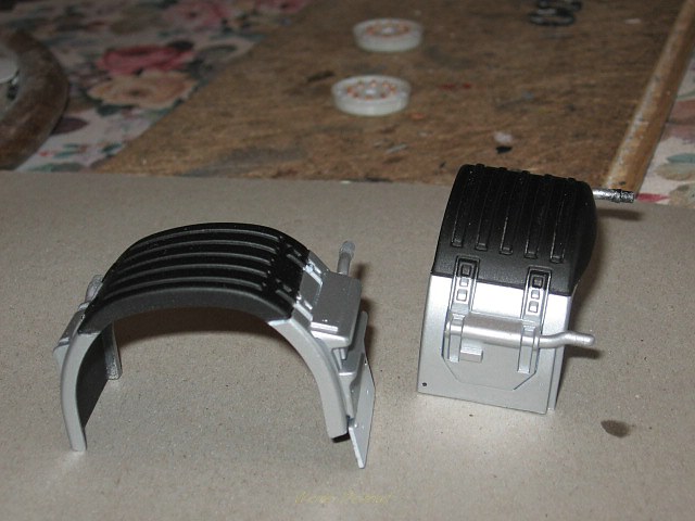 Also als Grundierung und Farbe verwendete ich die von Revell Email, diese kleinen Döschen, zum verdünnen nehme ich handelsübliche universal Verdünnung die verträgt sich mit den meisten Farben. Als Mischverhältnis kann ich nur soviel sagen so ca. 1:1 aber da die Farben zum teil unterschiedlich dick sind kann es schon mal mehr oder weniger sein, ich mache es mehr nach dem gefühl. Ich arbeite mit ca. 1 bis 1,5 bar und als düse kann ich beim Silber nichts sagen da ich es mit dem Revel Starter Kit lackiert diese Billigteil, und bei Rot 0.5. Da hatte ich aber eine Double Action Gun da die ein feineres Sprühbild gibt. Ansonsten kann ich dir nur noch den Tip geben bevor du die 2 Farbe sprühst lackier nochmal vorsichtig mit der Grundfarbe über die stellen die dann andersfarbig werden sollen, damit entgehst du der Gefahr das die andere Farbe unter das Abgeklebte läuft.