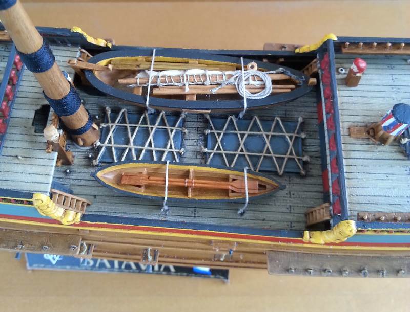 . Was der Bausatz vielleicht etwas überdimensioniert mitliefert ist die Besanrute, diese erscheint mir (damals nicht, aus heutiger Sicht schon etwas) zu mächtig. Aber das verwächst sich später sowieso durch die Takelage.