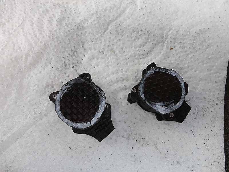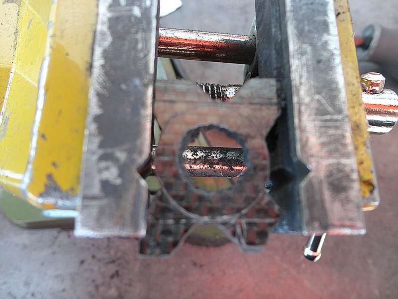 Und geschlossen mit Blick auf den Radseitigen Bremsbacken mit sämmtlichen Löchern für die Führungsbolzen, den eingeklebten Führungsbolzen und den Löchern für den Bowdenzug und den Laufkanal für den Bowdenzug: