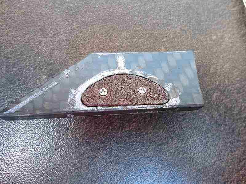 Anschließend wurde noch um die Bremsbeläge herum eine Aussparung in die Bremsbacken geschliffen, damit die Bremsscheibe genug Luft hat, um Reibunsfrei laufen zu können: