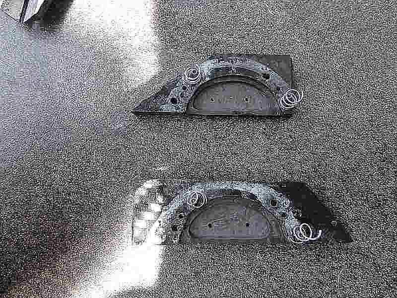 Auf dem nächsten Bild sind bereits kleine Löcher angebohrt, in die die Federn einrasten können, sodaß sie beim Zusammenbau nicht verrutschen können: