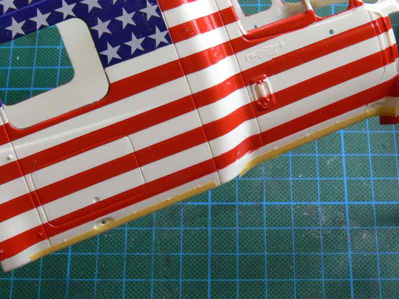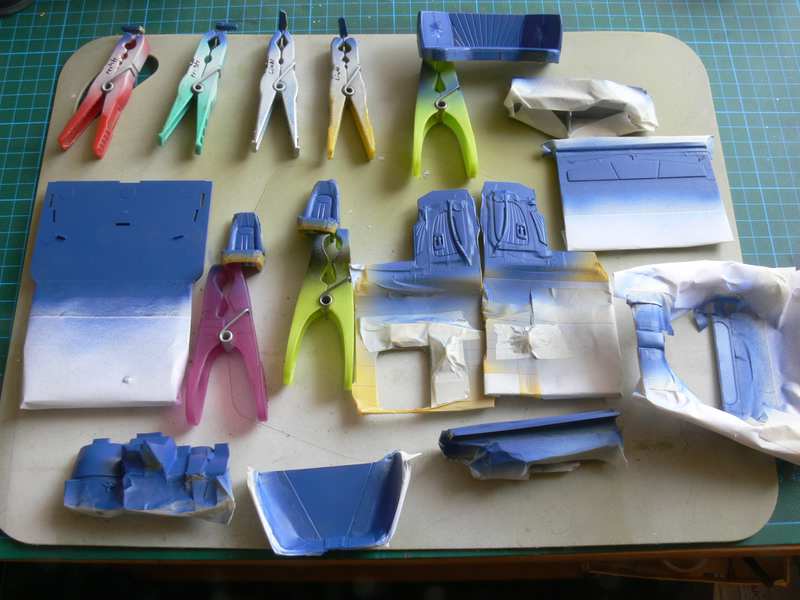Wie ihr euch sicher erinnern könnt, habe ich vor einiger Zeit ja schon ein paar Teile lackiert, zu Auffrischung noch mal ein Bild davon und hier hieß es nun, weitermachen. Das bedeutet, abkleben ist angesagt.
