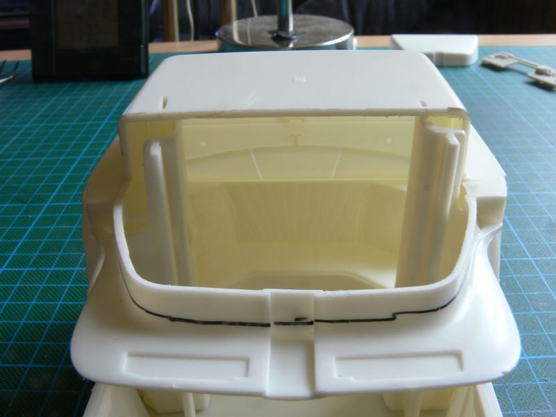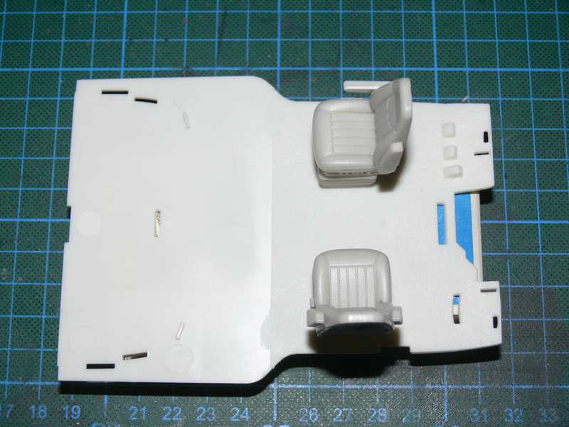 Nun kamen aber schon zwei kleine Umbauten an die Reihe, zum einen wollte ich eine der Lehnen vom Fahrersitz nach unten geklappt haben und zum anderen, gibt es da an einem der Schränke, einen angegossenen Klapptisch, einen kleinen... :D