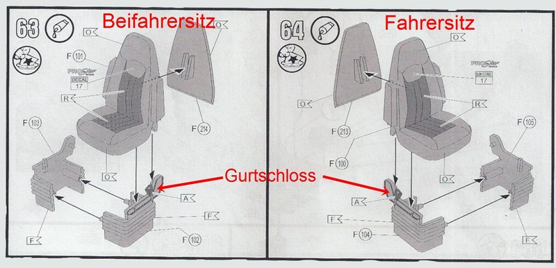 Als nächstes waren dann noch die Sitze dran, müssen ja auch fertig werden damit sie lackiert werden können. Zu den Sitzen gibt es aber am Ende, hier, noch eine Anmerkung, ich bin da über einen Fehler in der Revell Bauanleitung gestolpert, den ich euch dann mitteilen will.