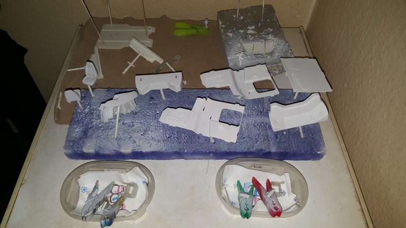 Als nächstes geht es dann ans waschen, legen und trocknen... nene, waschen und trocknen ja, aber dann geht es ans Lackieren der ersten Farbschicht für den Innenraum, bis dahin dann wieder,