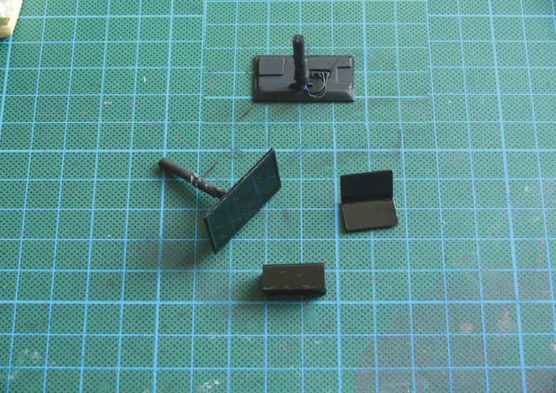 Das war es dann auch schon mit den Basteleien, halt nein, noch nicht ganz, eine Satschüssel, bzw. eine entsprechende Antenne aus dem Wohnmobilbereich kommt später auch noch dazu. Zunächst, soll es aber mit der Lackierung der Innenteile weiter gehen.