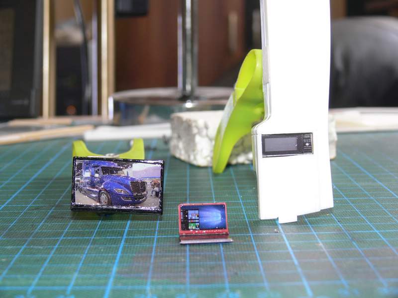 Der Fernseher, von vorne, der Laptop und die Mikrowellenblende wurden nun glänzend Schwarz lackiert, der Fernseher, später dann von hinten in matt Schwarz.