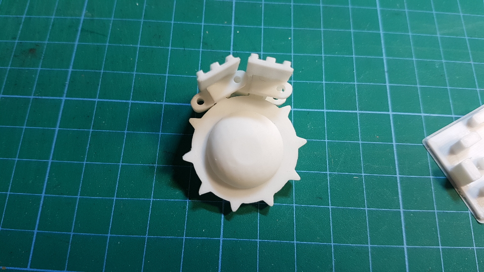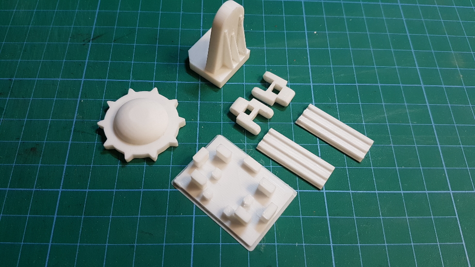 Jetzt habe ich schon angefangen das Antriebsrad um 15% zu verkleinern und dann die Unterwagen-Konstruktion anzupassen. Die Bodenplatten kann ich weiter verwenden. die 30mm breiten Ketten sollen ja erhalten bleiben. Aber die Halterung für das Antriebsrad, das Rad selbst und ein weiters Teil das ich über Nacht gedruckt habe muss ich neu machen. Verbuchen wir unter "Wertvolle Erfahrung" ;)