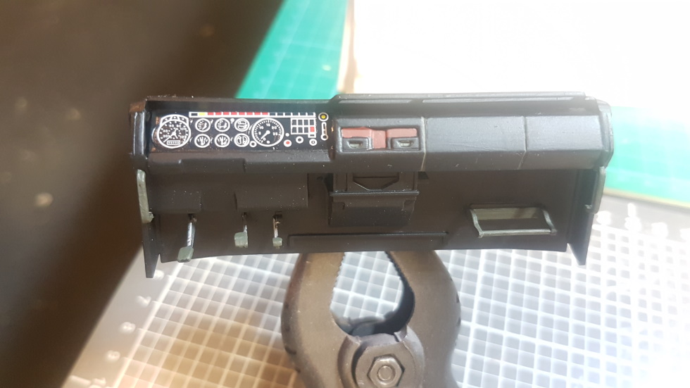 Das Armaturenbrett bekam sein Decal und ein bisschen mehr Farbe. Leider passt das Decal nicht 100% auf die Anzeigen. Fällt aber nur bei bestimmten Blickwinkeln auf. Viel mehr werde ich hier auch gar nicht mehr machen: