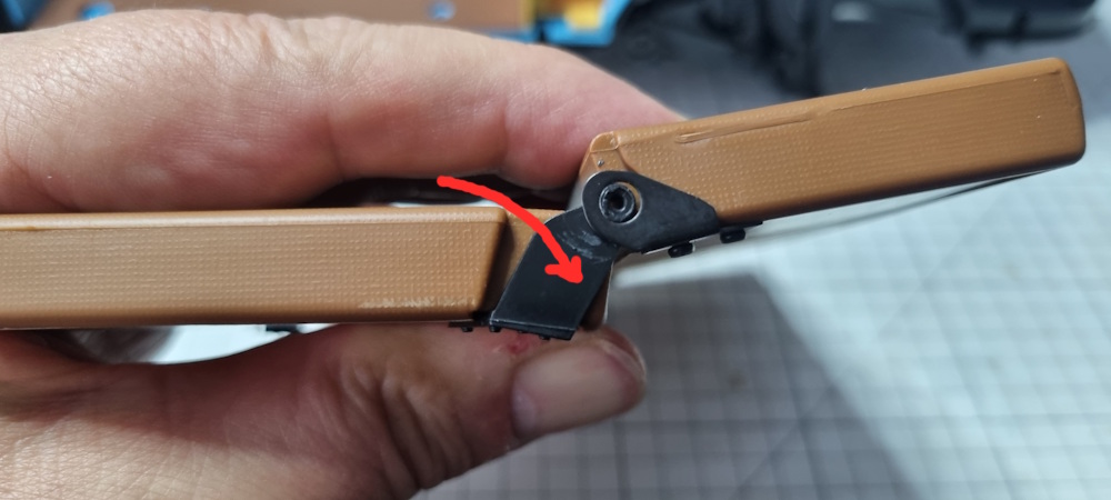 Schaut man sich die Bauteile an, erkennt man sofort das das Scharnier völlig falsch konstruiert wurde.