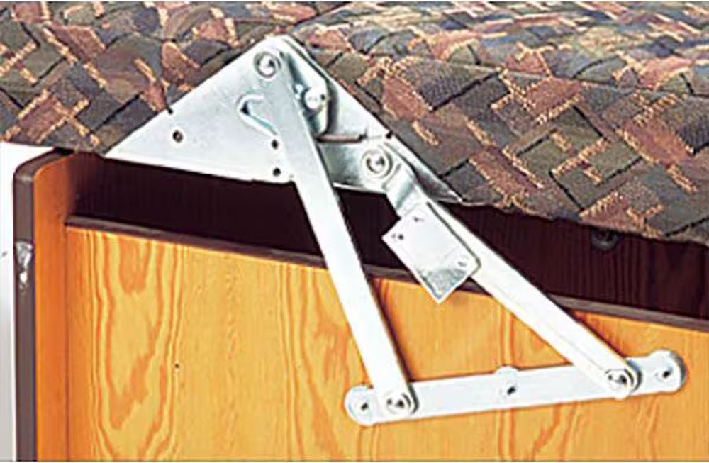Beide Scharnierwinkel in der richtigen größe (Winkel) und 3 Steben pro Seite und die Sitzbank läßt sich wie im Original umklappen.
