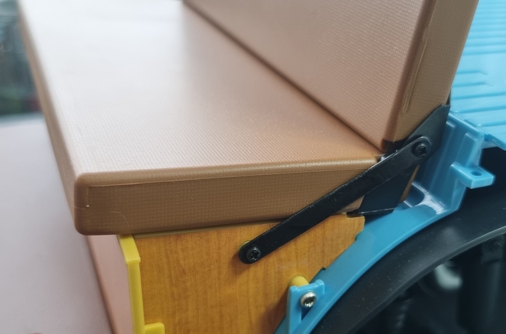 Warum hier nur eine Strebe anstelle der 3 Streben für den Klappmechanik verbaut wurde ist schon fast zu vernachlässigen.