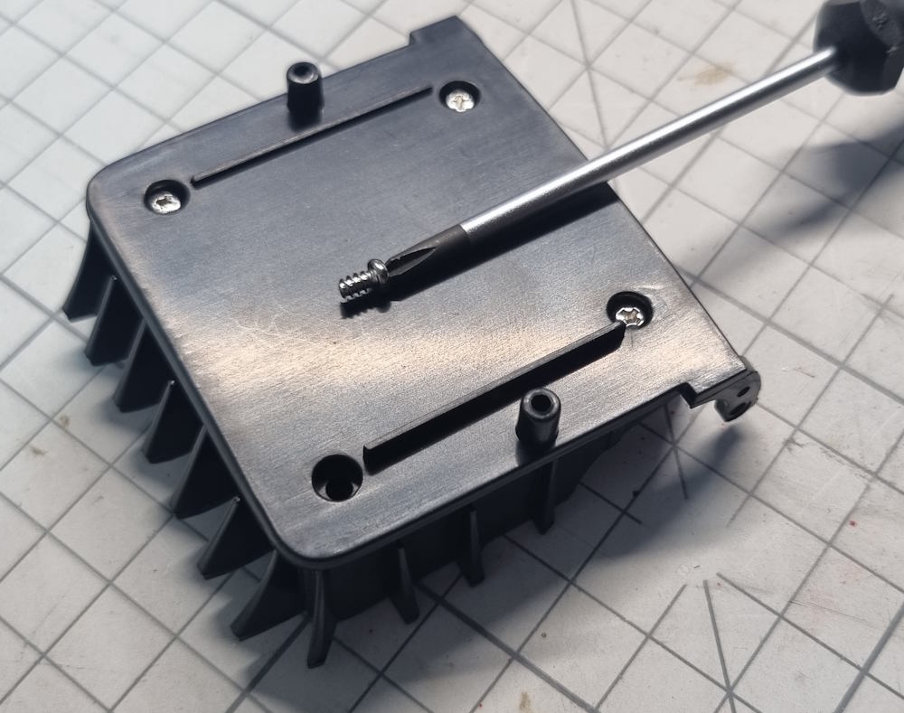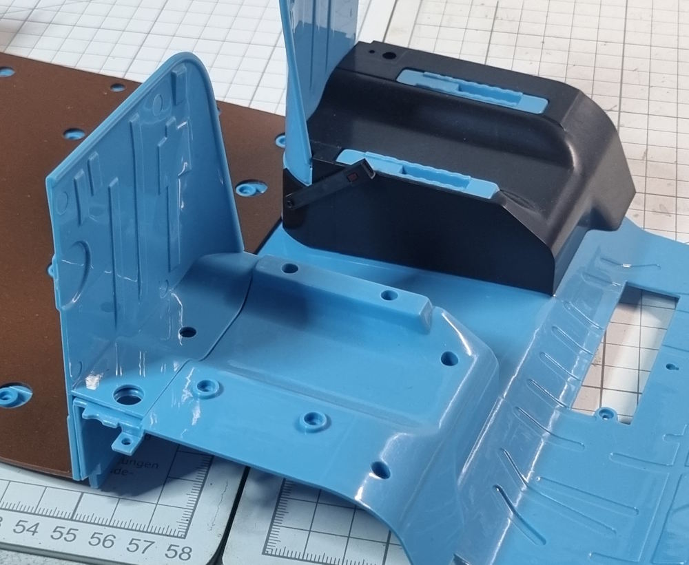 Dieses Stück wurde mit 4 Schrauben an der bereits begonnenen Bodengruppe verschraubt.