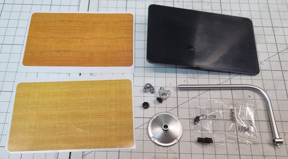 die ausgepackten Bauteile dieser Ausgabe und ich freue mich, Aufkleber...