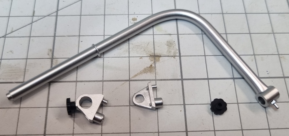 Jetzt wird das Gestell bzw. der Haltearm für den Tisch zusammengebaut und unter den Tisch montiert.