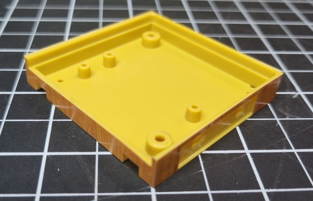 Ob man später die mühselig aufgeklebte Holzoptik der Rückseite noch sehen wird bleibt fraglich.