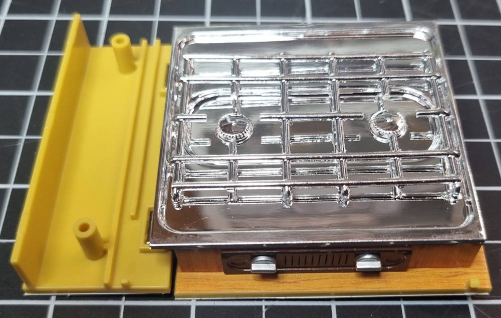 Anschließend wird die Kochmulde zusammen mit dem Topfgitter aufgesteckt und diese Ausgabe ist schon fertig verbaut.