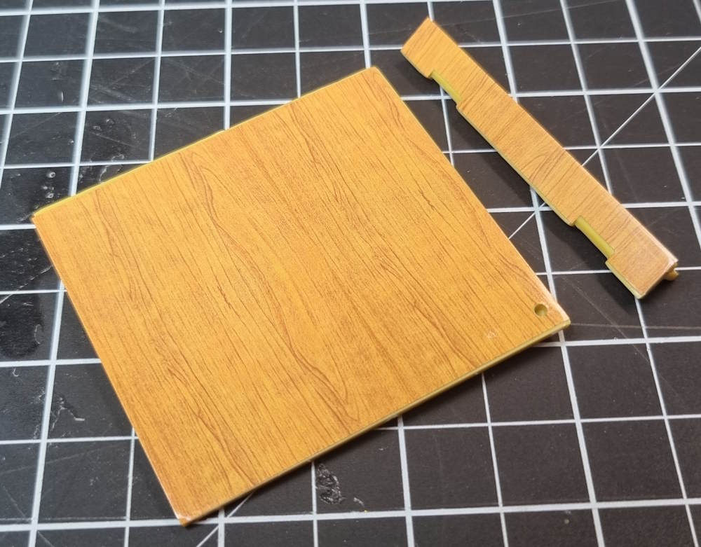 Kommen wir zu einer meiner Lieblingsaufgaben, das bekleben der Bauteile mit Holzmaserung.