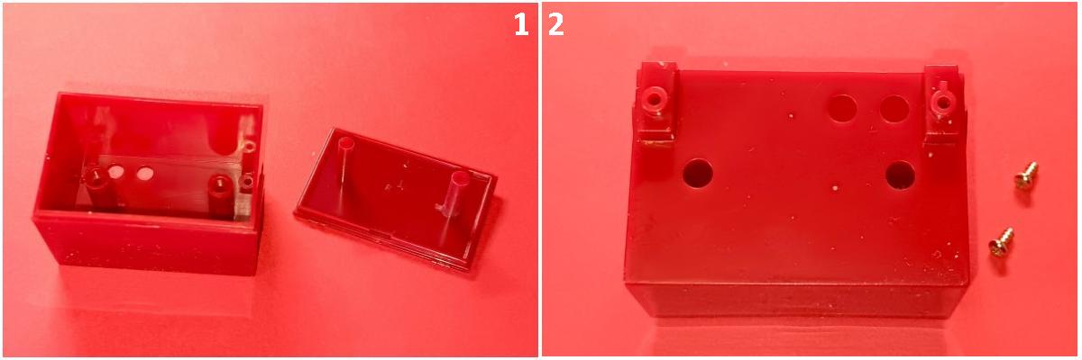Zuerst setzen wir den Staukasten zusammen. Dieser besteht aus zwei Teilen ( Bild 1 ). Der Deckel wird von vorn eingesteckt und dann von hinten verschraubt ( Bild 2 ). Im letzten Bild sehen wir dann den fertigen Kasten.