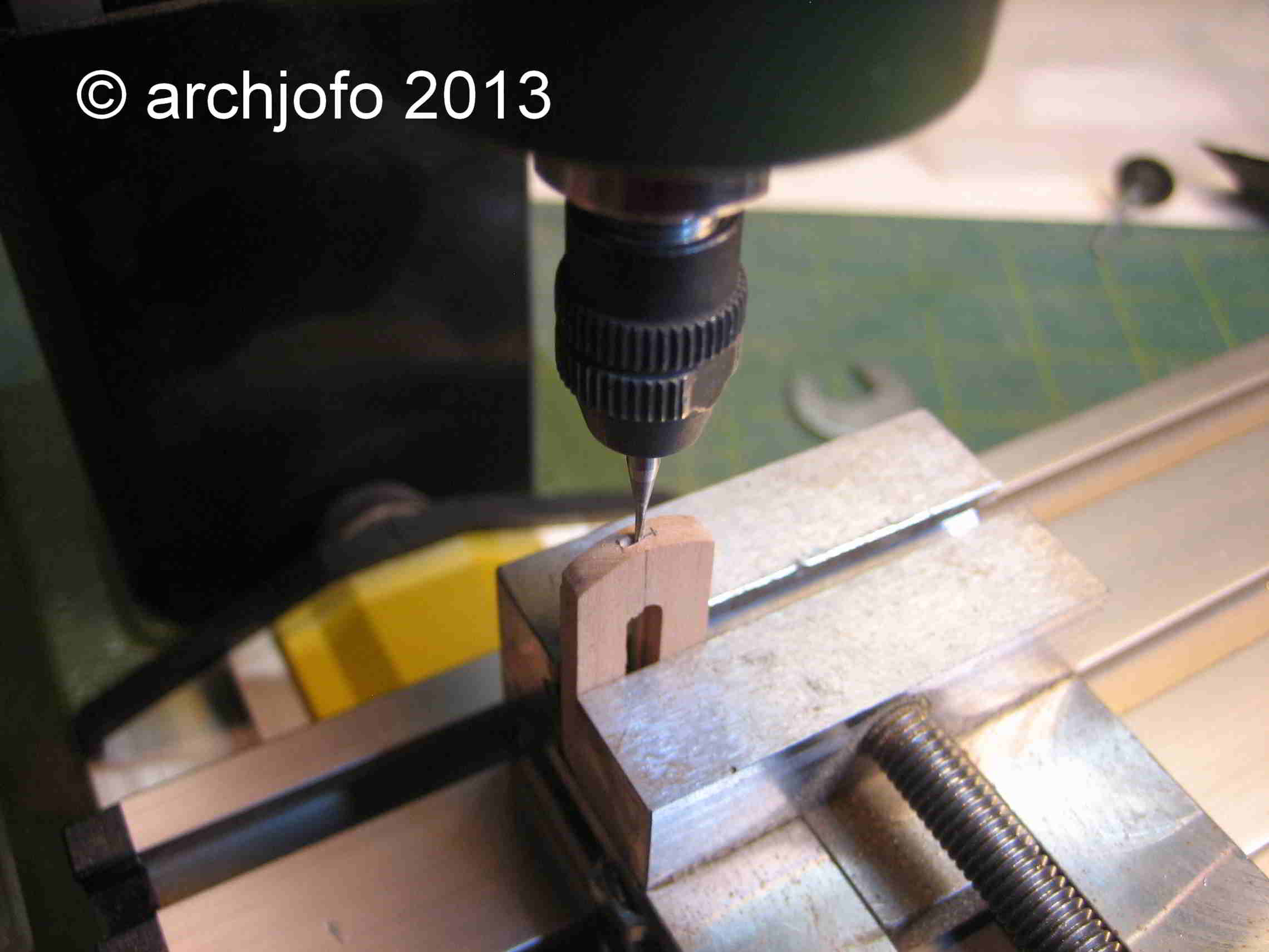 Diese kleinen Bohrungen können nur mit einem Bohrständer durchgeführt werden. Sehr hilfreich ist dabei auch ein Koordinatentisch, da die Bohrungen auf den zehntel Millimeter genau sitzen sollten.