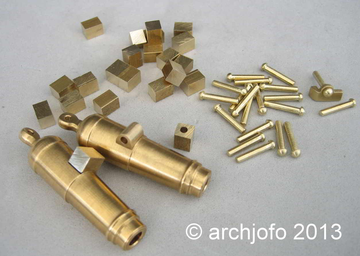 So nun sind die Beschläge für die Carronadenlafetten soweit hergestellt. Für den Zusammenbau müssen die Messingteile noch mittels Brünierung geschwärzt werden.