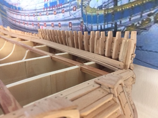 Abdeckbrett im Bereich des Wassergangs, die äußere Deckleiste sowie die obere Reelingabdeckung ...