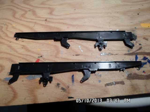Nun konnte es endlich losgehen! Ich klebte die 3 Rahmenteile erst einmal zusammen und danach kürzte ich das Heckteil und trennte die Achsaufnahmen ab! Jetzt hatte ich einen geraden Rahmen ohne Aufnahmen und kann so später die Achsen richtig positionieren! Aber jetzt erstmal Bildmaterial... :ok:
