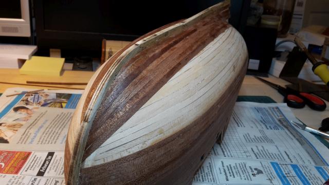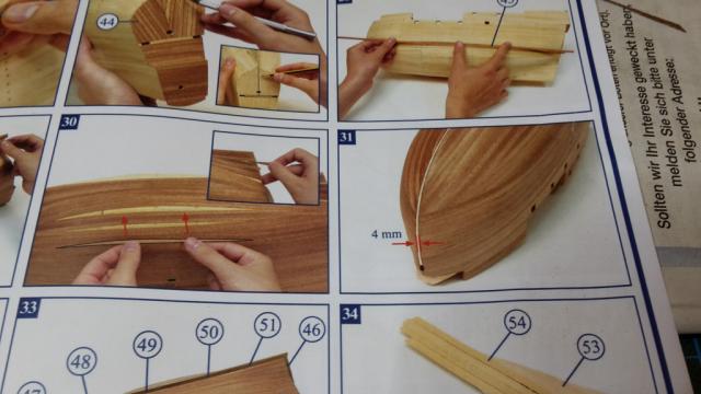 ist. Und gerade am Unterwasserrumpf wird, wie meine Erfahrung von der Erstbeplankung zeigte, viel anzupassen und zu korrigieren sein.