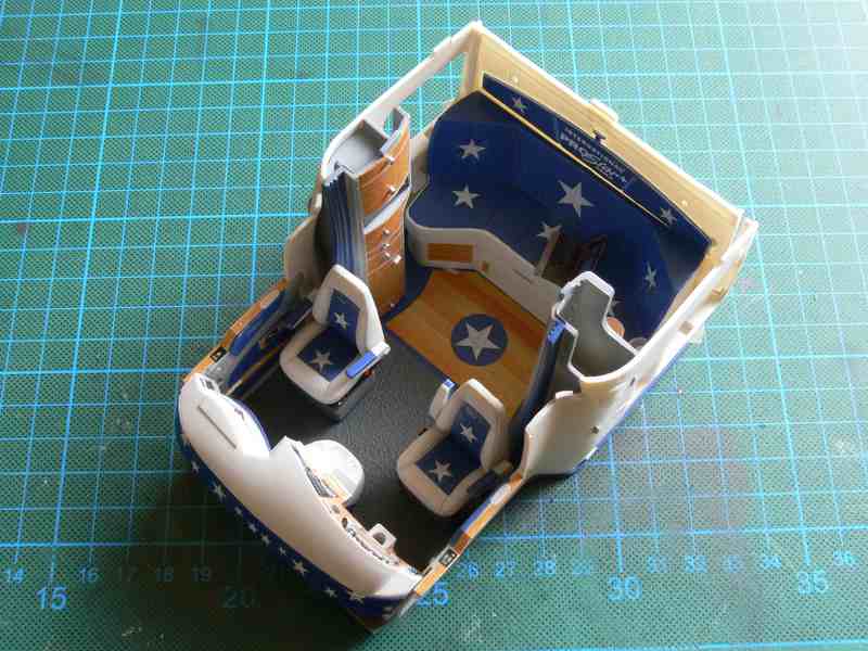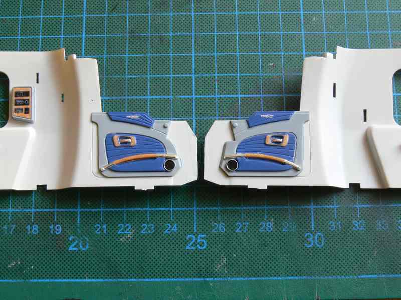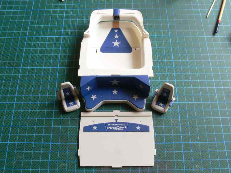 So, weiter geht es mit dem Zusammenbau der Kabine, oder besser gesagt, sollte es gehen, denn die Teile waren ja auch alle fertig dafür und ich habe dann mit den Sitzen angefangen, gefolgt vom Armaturenbrett.