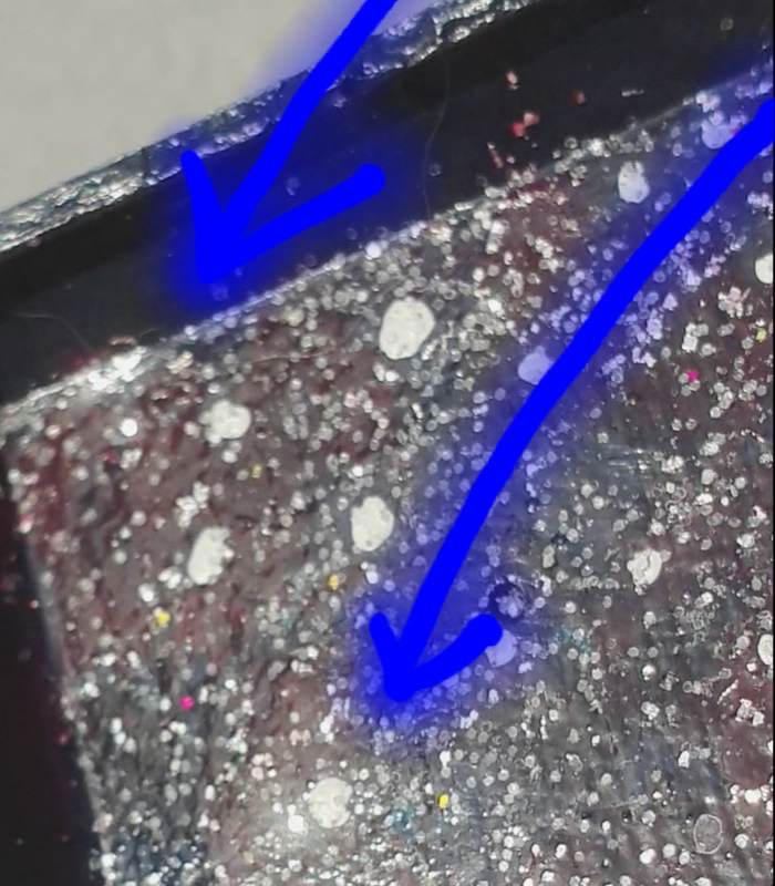 und die Blasen sind weil ich zuviel und zu schnell gerührt habe (Luftblasen die mit angetrocknet sind ... WTF)