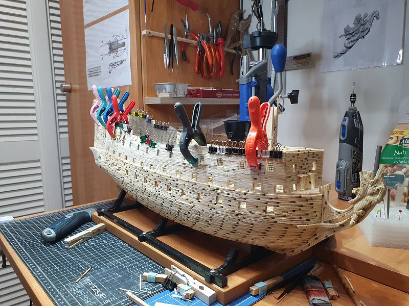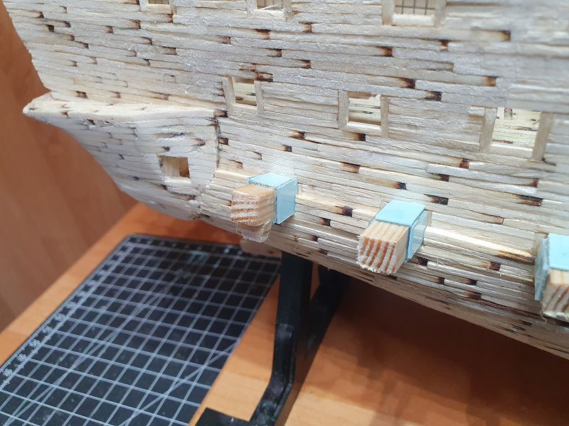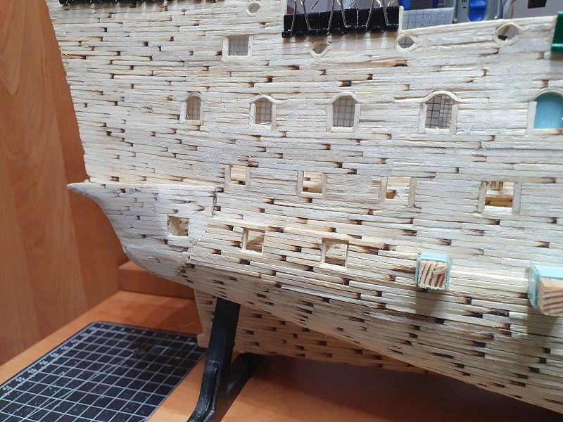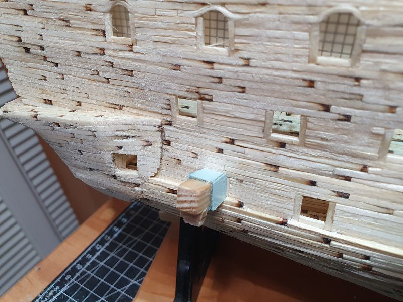 Und dabei auch die runden Luken verlängern. Wobei ich diese aus halben Streichhölzern machte