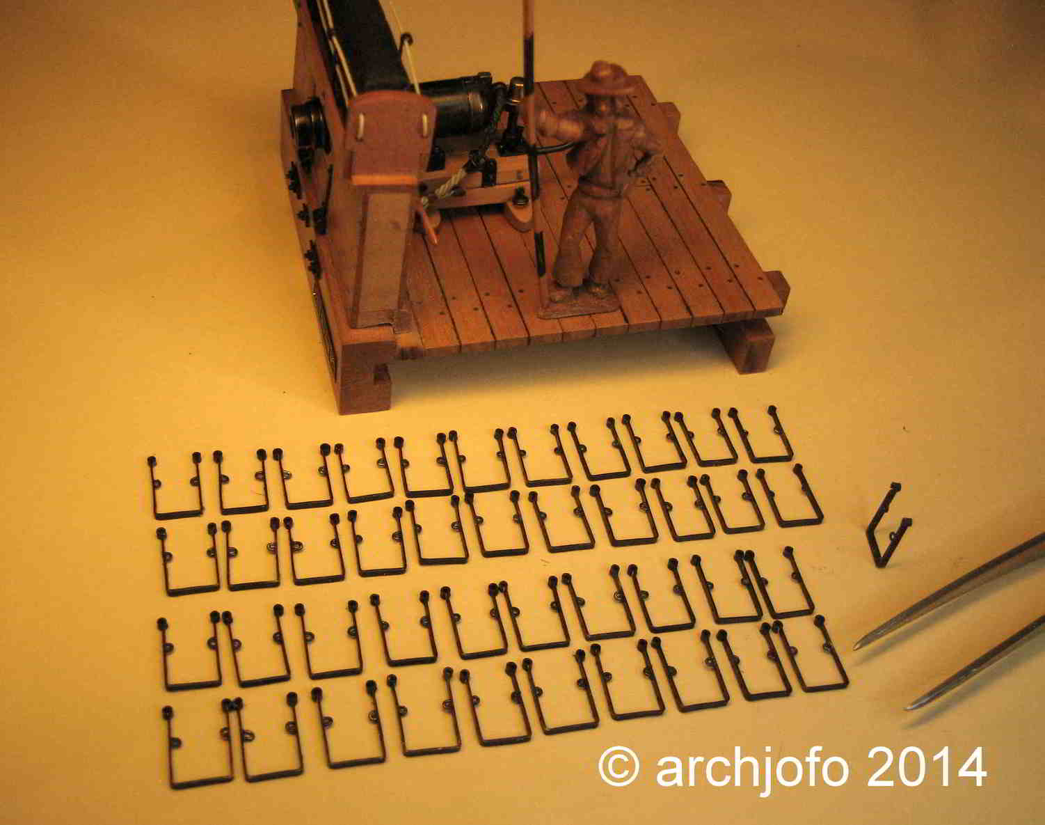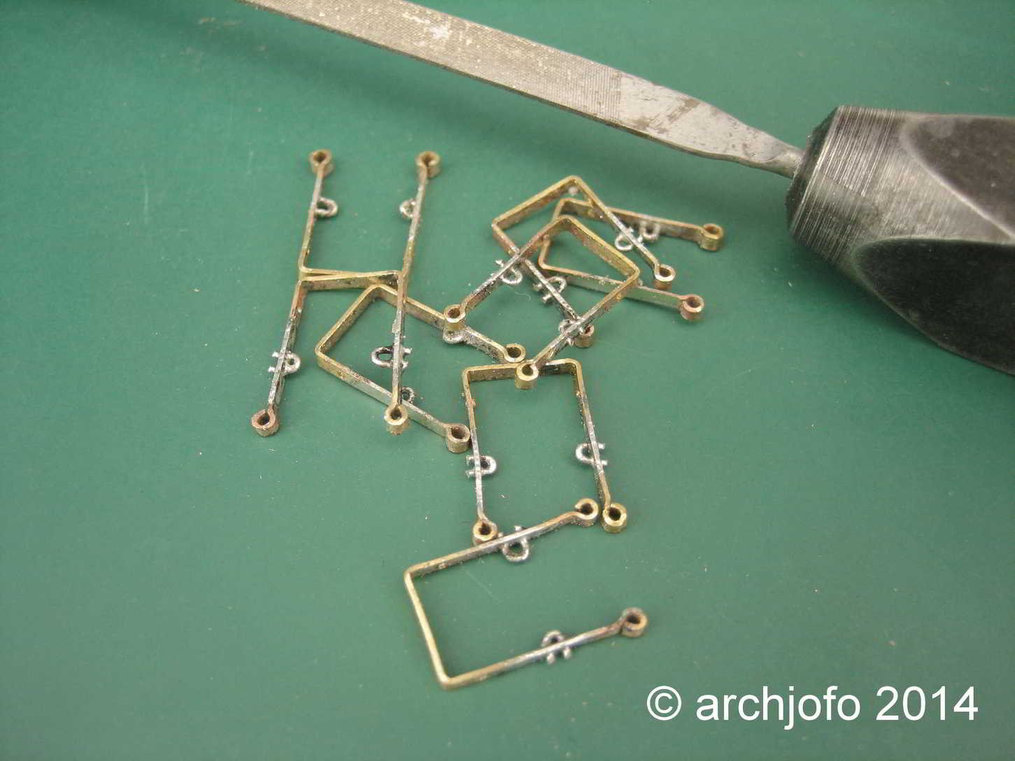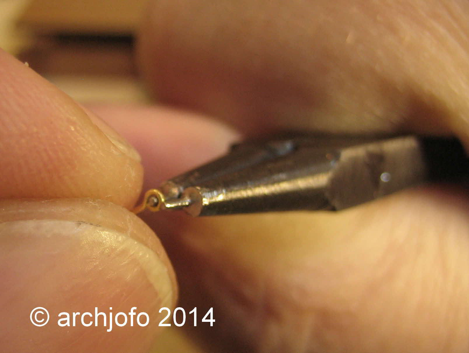 Außerdem habe ich noch fast Hundert filigranste Haken mit Ösen aus 0,3 mm Messingdraht zu biegen.