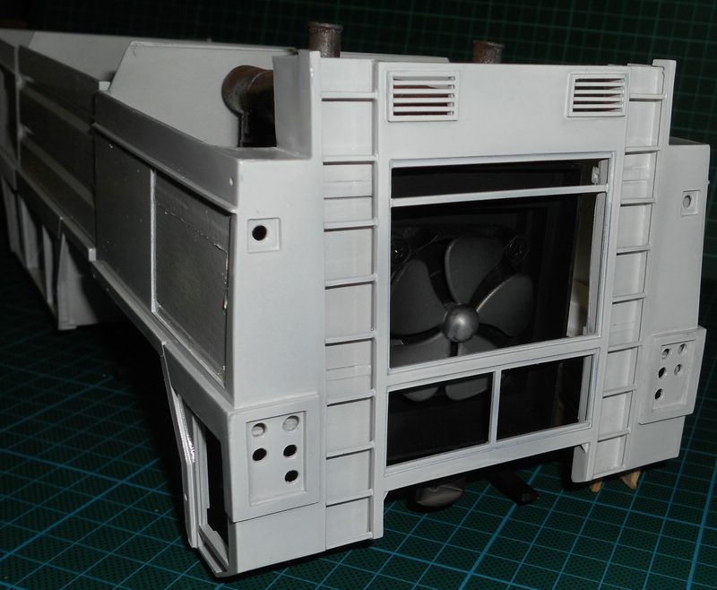 Die Heckansicht mit dem Riesenpropeller sieht auch schon sehr gut aus. hier stören mich allerdings ein bischen die sehr prominenten Kreuzschlitzschrauben.