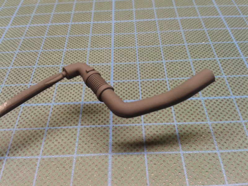 Am Motor habe ich auch etwas gemacht. Die Ansaugung bzw. Frischluft- und Abgasleitungen wurden geändert und aus Gussästen und Sheet wurde der Kompressor und ein Filter (?) gebaut.