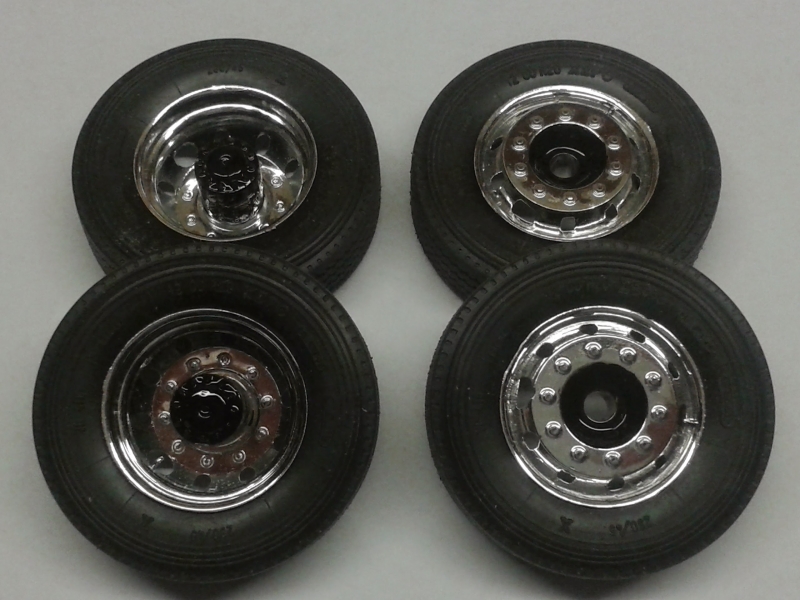 Da die Räder bzw. die Naben am Original in Rahmenfarbe lackiert sind, habe ich das am Modell auch so umgesetzt. Die blanken Chromfelgen sahen ohne die farbliche Abstufung einfach trist aus, aber so wie jetzt sehen sie schon viel besser aus!
