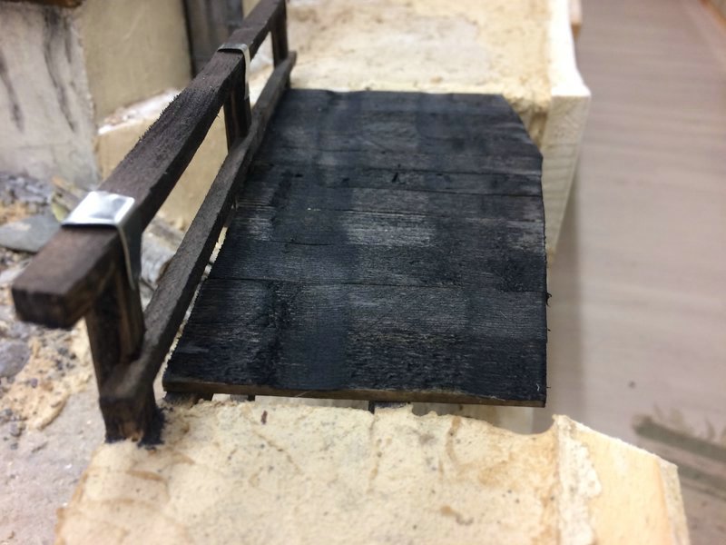 ...danach hat Wolfgang noch die "Fahrbahn" auf die Brücke gelegt und gebeizt bevor der nächste große Schritt bei unserem Modell an der Reihe war.